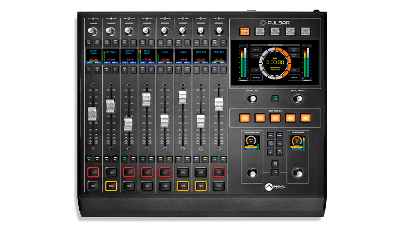 Mesa de mistura de áudio AoIP profissional, pronta a usar, com controlo remoto via navegador e funcionamento totalmente silencioso.