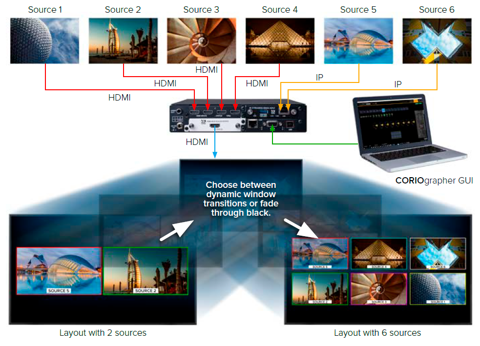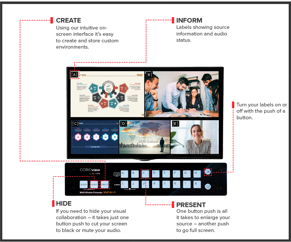 O tvONE CORIOview MWP-MTO é um processador multi-janela 4K pensado para quem precisa de visualizar várias fontes em simultâneo com rapidez e controlo. A versão Made to Order permite selecionar e combinar tipos de entrada e escolher o módulo de saída mais adequado ao projeto, evitando compromissos desnecessários. É uma solução plug and play, com controlo por painel frontal e presets para alternar layouts em segundos. Ideal para salas de reunião, huddle rooms, espaços de colaboração e control rooms onde a clareza do multi-ecrã faz diferença.